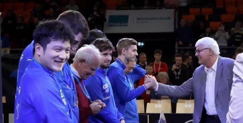 2025年12月的德国杯决赛后,樊振东与队友轮流举起奖杯。 教练、助理甚至未上场的替补队员均有机会捧杯,团队荣誉被具体化为每个人的笑容。 这一幕与WTT商业化领奖台形成对比——德甲的胜利属于整个集体,而非只是明星个人的高光。