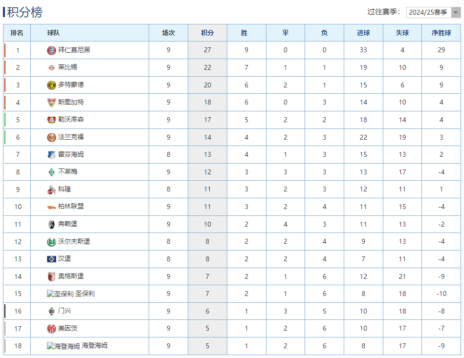 德甲直播,德甲赛程,德甲积分榜,拜仁vs多特直播,德甲比分预测/专为中文球迷打造的德甲资讯站,覆盖2025赛季直播入口、赛程安排、积分榜更新与竞彩比分预测,聚焦拜仁、多特、莱比锡、勒沃库森等焦点球队。昨晚今晨,德甲联赛第9轮激战多场,拜仁主场3-0完胜勒沃库森,豪取本赛季各项赛事15连胜,继续刷新纪录,杰克逊打进德甲处子球;莱比锡主场3-1击败斯图加特,升至联赛第2位,迪奥曼德破门,努贝尔超级失误送大礼;门兴客场4-0大胜圣保利,取得联赛首胜。