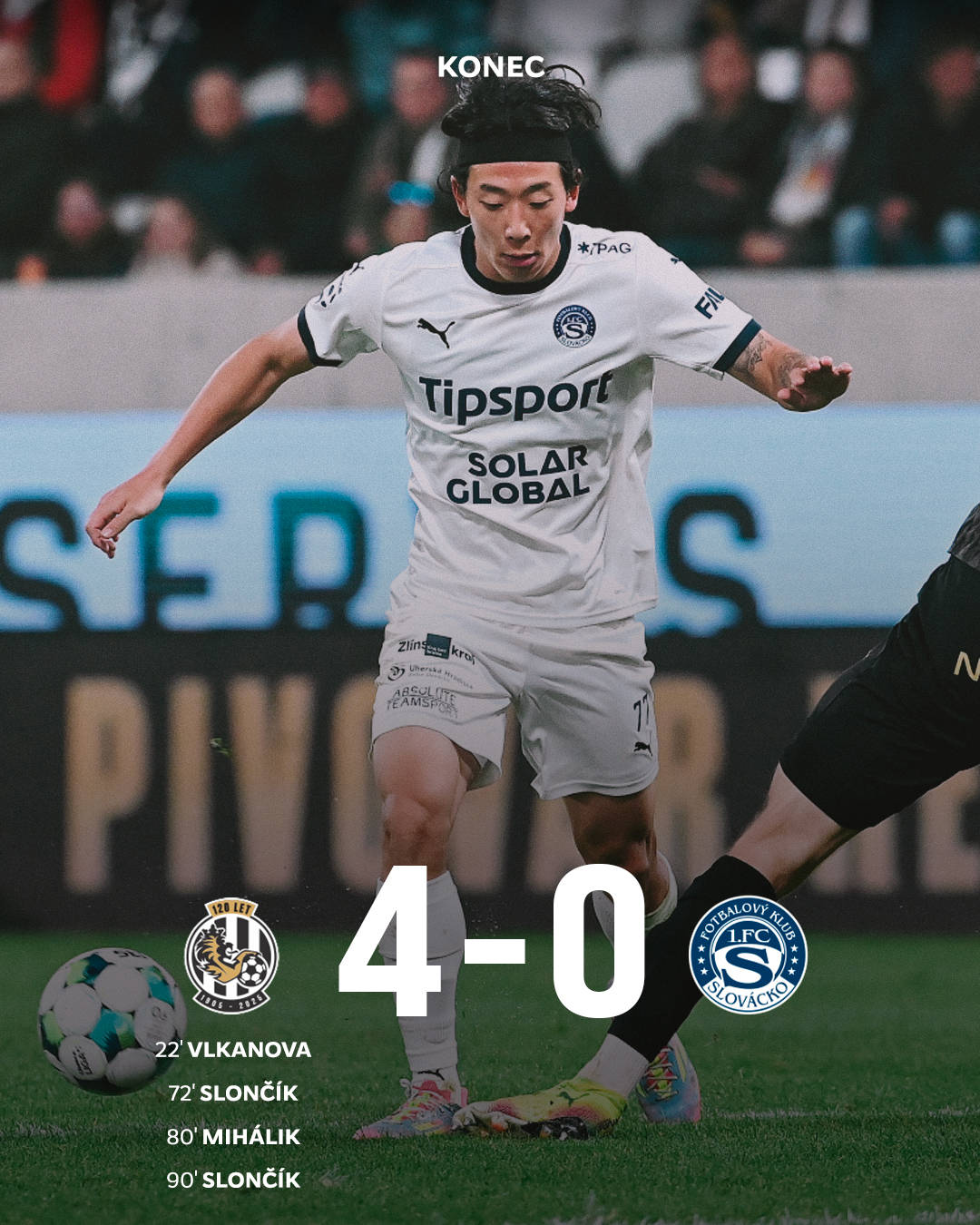 最后我们需要大书特书的是捷克甲级联赛舞台的金承彬。自从赛季初的热身赛受伤后,金承彬一直处于养伤状态。在9月复出后,由于长期没有比赛,小金只能在U23保持状态。而在昨晚2025-26赛季捷克甲级联赛第15轮斯洛瓦茨科客场与赫拉德茨-克拉洛韦的比赛中,金承彬不仅回到联赛阵容中,而且以首发左边锋打满全场。全场比赛,小金42次传球,其中长传成功率100%,1次断球,外加7次成功抢回球权发动进攻,在对抗方面,空中成功1次,并有一次成功带球过人。虽然球队0-4惨败,但赛后官方媒体用他的比赛照片作为封面,意味深长。此役过后,斯洛瓦茨科15场比赛8分依旧联盟垫底,希望金承彬复出后,可以逐渐帮助球队走出低谷。