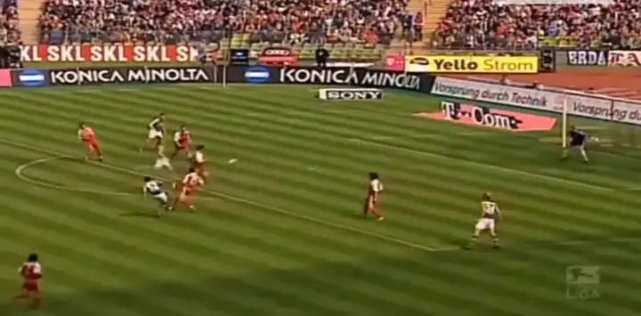 这个球进得非常漂亮,也让不莱梅把德国巨人拜仁挑下马来,帮助球队拿到了冠军。
