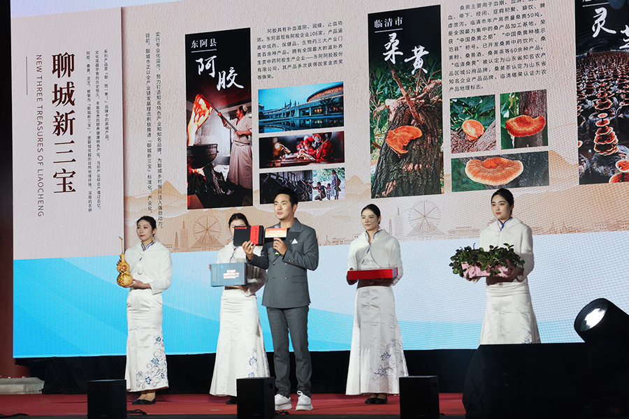 前门中华美食荟山东周暨“两河明珠 京彩绽放”山东聊城文商农旅北京宣推活动开幕式上,演员张晓龙推介“聊城新三宝”