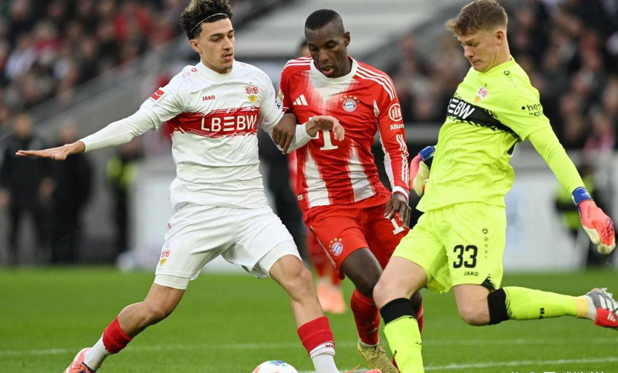 比赛伊始,拜仁便频频发动猛攻。开局阶段,雅克松抢断突破险些破门,虽被防守球员化解,但威胁十足。随即,昂达夫禁区抽射遭遇争议裁判未判罚手球犯规。第11分钟,拜仁率先打破僵局,奥利塞妙传助攻莱默尔巧妙用脚后跟完成破门,展现极富创造力的配合。随后双方互有攻守,斯图加特几次尝试均错失良机,第43分钟纳尔泰头球攻门因越位无效。半场结束时,拜仁以1-0领先。