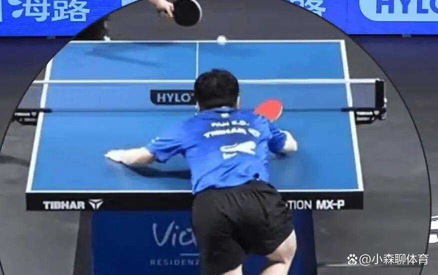 还有一次,他被对手一个擦网球“戏耍”,直接整个人趴在了球台上救球,重现了那个经典的“熊猫趴桌”动作,把现场球迷都给逗笑了。