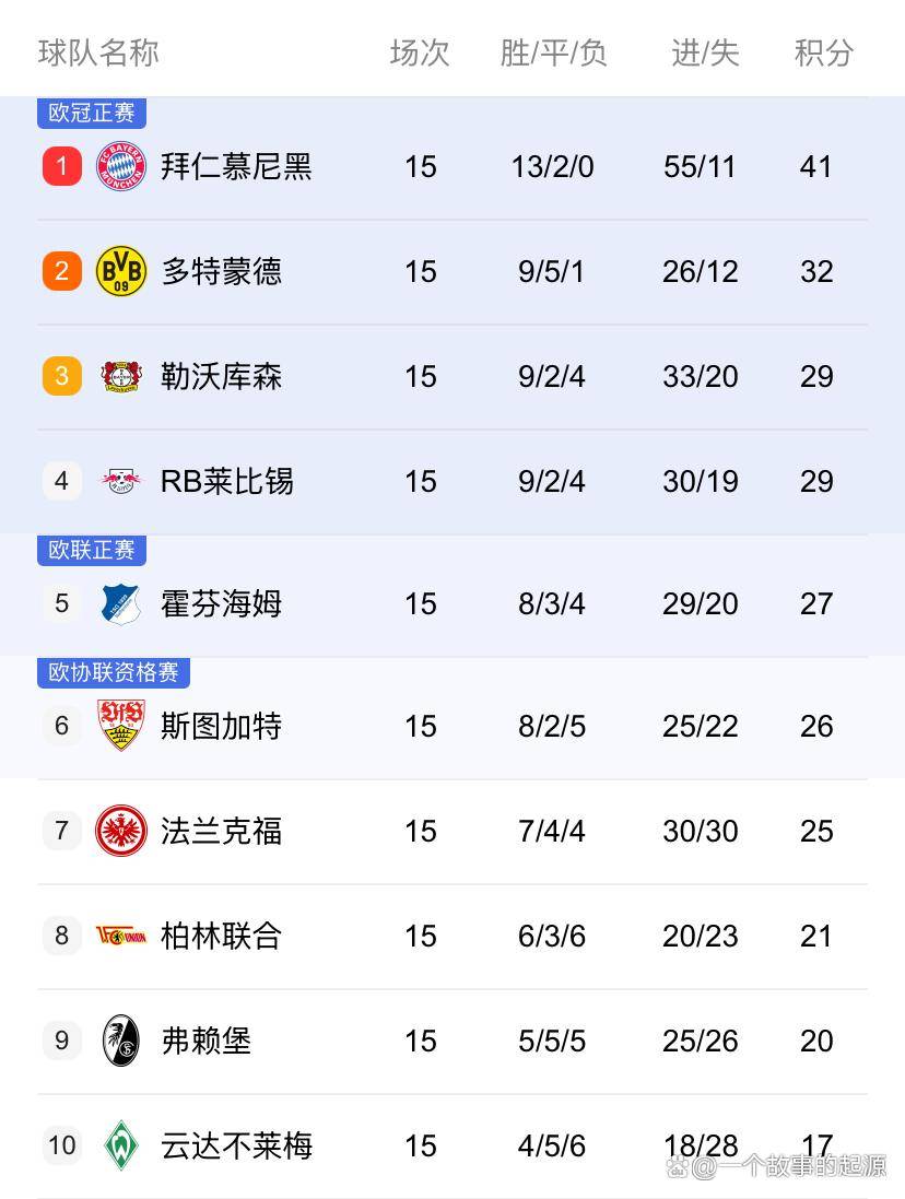 本场比赛是拜仁在2025年的最后一场德甲联赛。15轮战罢,拜仁以13胜2平的不败战绩积41分领跑,领先优势已达9分。