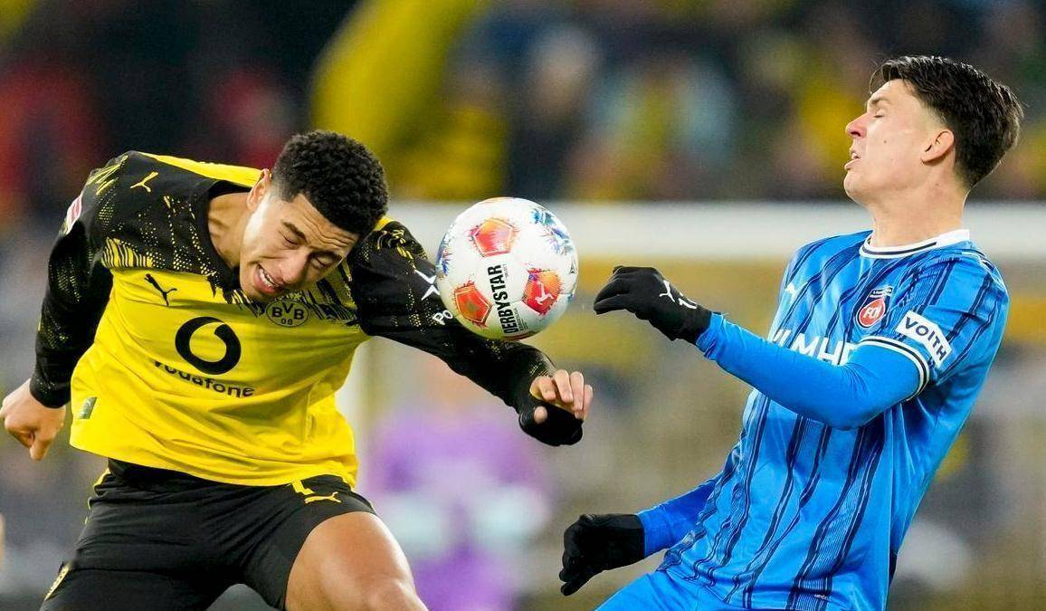 僵局在第44分钟被打破。海登海姆门将拉马伊出击接高空球脱手,多特蒙德后卫安东抓住机会劲射破门,多特蒙德1-0领先。然而上半场补时第5分钟,海登海姆的尼许斯在门前混战中破门,将比分扳平为1-1。