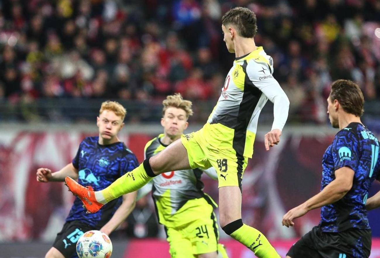 比赛伊始,多特蒙德便创造了一次绝佳的得分良机。开场仅8分钟,拜尔便带球奔袭半场,洞穿了对手的防线,一路突入禁区,面对门将冷静施射,但这次低射被门将舒恩拜特神勇扑出,莱比锡险些城门失守。然而,命运的齿轮在第20分钟转向了主队。莱比锡的迪奥曼德在禁区左侧觅得良机,果断下底传中,中路包抄的鲍姆加特纳抢点破门,为球队打破了僵局。失球后的多特蒙德一度陷入被动。八分钟后,鲍姆加特纳再次出现在禁区内,一次门前抢射稍稍偏出,错失了梅开二度的机会。紧接着,格鲁达因犯规动作过大,被裁判出示黄牌警告。